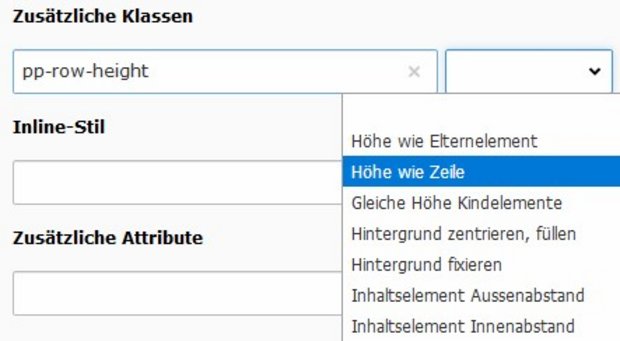Inhaltselemente können über Attribute individuell gestaltet werden. Für Klassen und Attribute bestehen Definitionen, welche über das Auswahlmenü hinzugefügt werden können. Aus Sicherheitsgründen können nur Daten-Attribute zu den Attributen hinzugefügt werden.